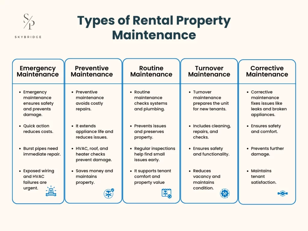 The 5 main types of rental property maintenance are: